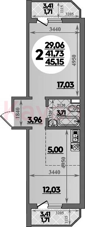 Продажа 2-комн. квартиры, 41.73 кв.м