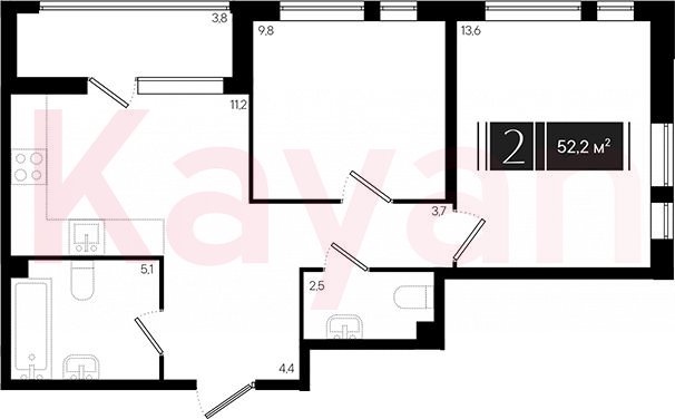 Продажа 2-комн. квартиры, 50.3 кв.м