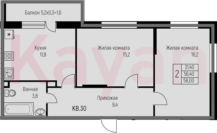 Продажа 2-комн. квартиры, 59.7 кв.м
