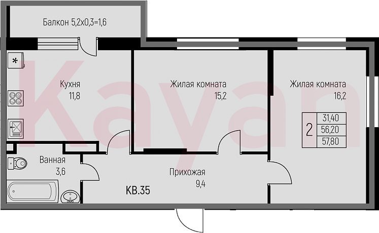 Продажа 2-комн. квартиры, 59.5 кв.м