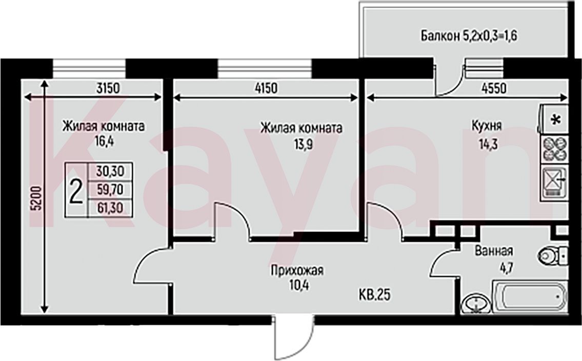 Продажа 2-комн. квартиры, 59.7 кв.м