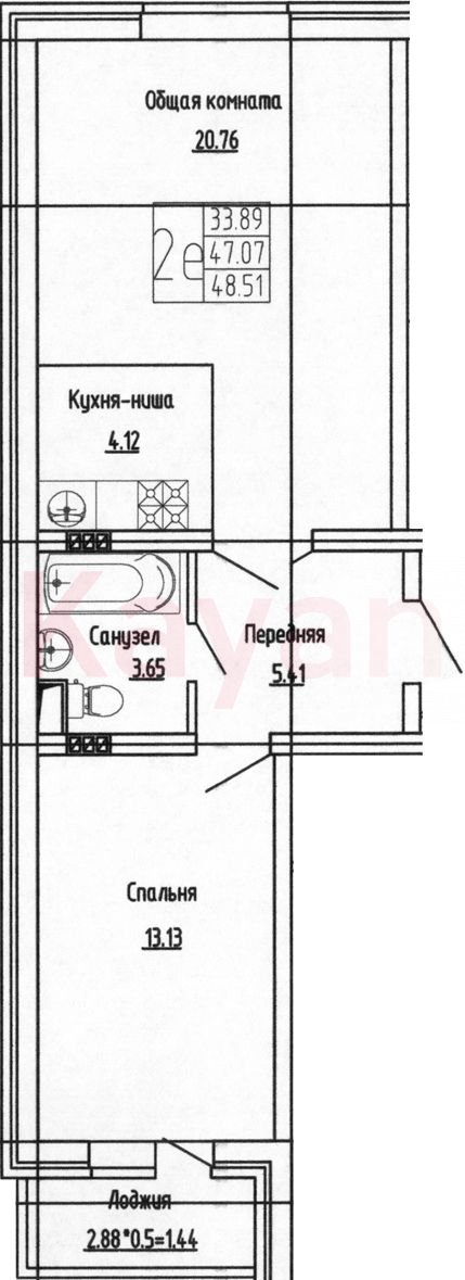 Продажа 2-комн. квартиры, 47.07 кв.м