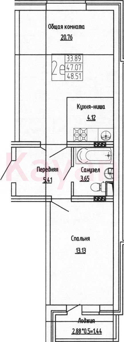 Продажа 2-комн. квартиры, 47.07 кв.м