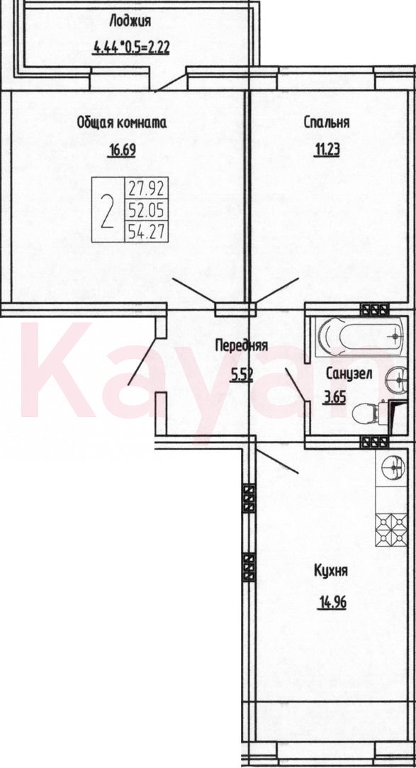 Продажа 2-комн. квартиры, 52.05 кв.м