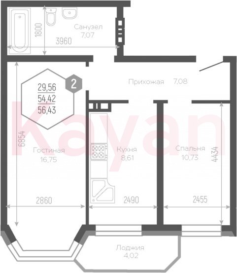 Квартира в ЖК «Южная звезда (Черкасский)» (Гарантия) литер 1 очередь 1, Кирпично-монолитный, 2 к.кв., 51.48 кв.м., 16/19, высота потолков: 2.8 м, жилая площадь: 27.48 кв.м., возможна ипотека, площадь кухни 8.61 кв.м.,