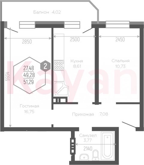 Продажа 2-комн. квартиры, 47.08 кв.м