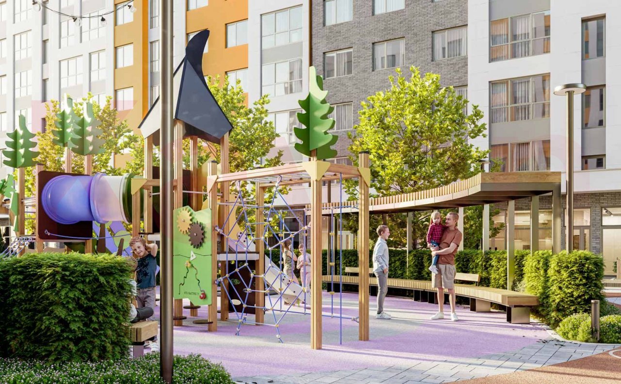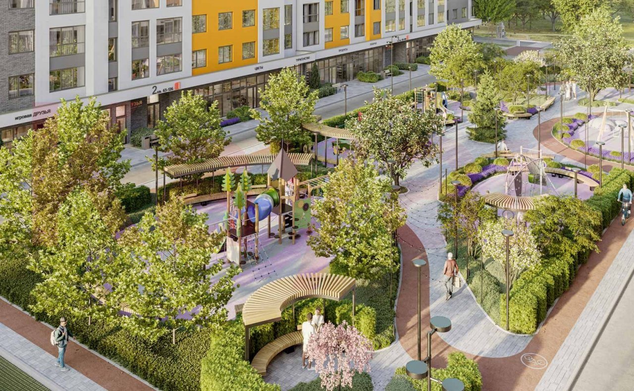 На территории комплекса предусмотрены места для отдыха, детски и спортивные площадки. На первых этажах расположены коммерческие помещения. В проекте спроектированы бесплатные игровая комната для детей и антикафе для подростков. Для владельцев автомобилей предусмотрены стоянка и отдельный многоуровневый паркинг.
