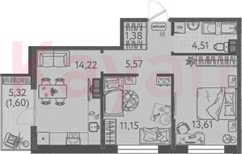 Продажа 2-комн. квартиры, 50.44 кв.м