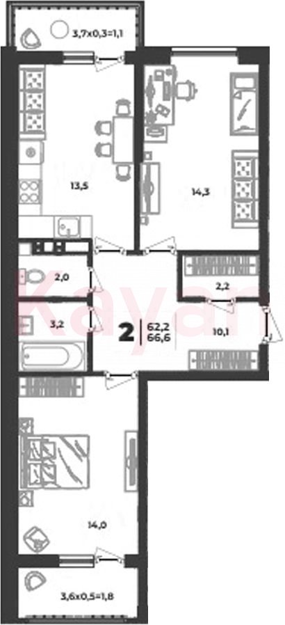 Продажа 2-комн. квартиры, 59.3 кв.м