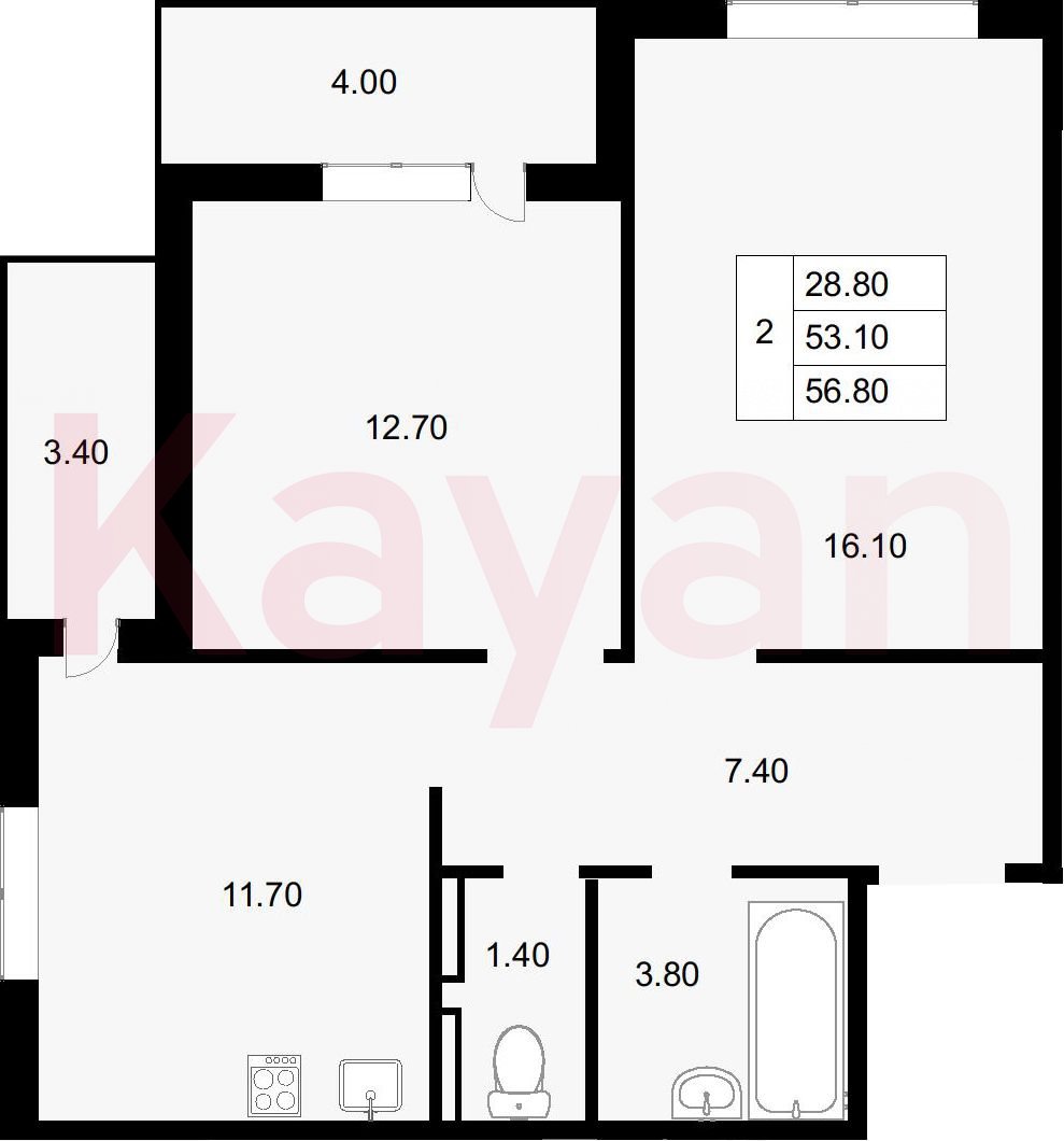 Продажа 2-комн. квартиры, 53.1 кв.м
