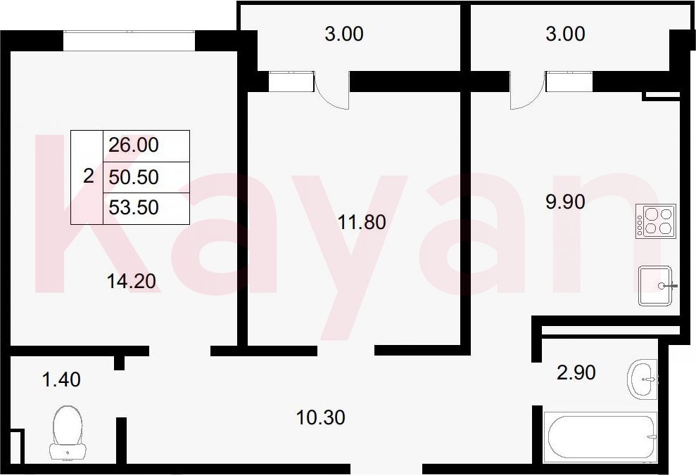 Продажа 2-комн. квартиры, 50.5 кв.м
