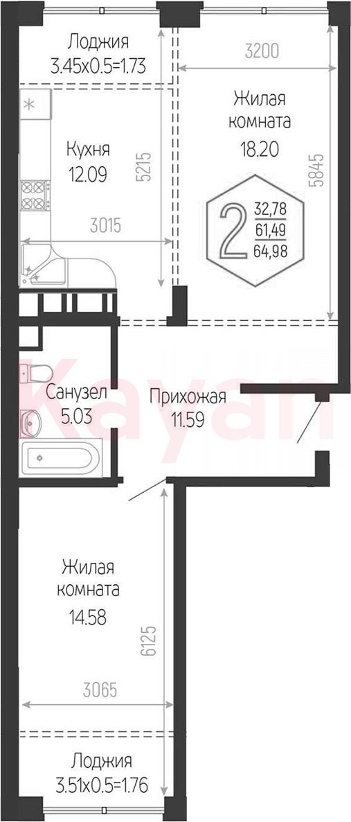 Продажа 2-комн. квартиры, 61.49 кв.м