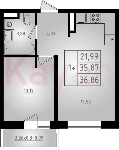 Квартира в Мега 2 (ООО Основа) литер 2 очередь 1, Монолитный, 2 к.кв., 35.87 кв.м., 7/8, высота потолков: 2.75 м, жилая площадь: 10.17 кв.м., возможна ипотека, возможна военная ипотека, площадь кухни 17.52 кв.м.,