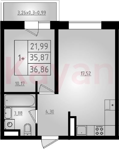 Квартира в Мега 2 (ООО Основа) литер 1 очередь 1, Монолитный, 2 к.кв., 35.87 кв.м., 4/8, высота потолков: 2.75 м, жилая площадь: 10.17 кв.м., возможна ипотека, возможна военная ипотека, площадь кухни 17.52 кв.м.,