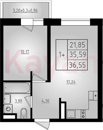 Квартира в Мега 2 (ООО Основа) литер 2 очередь 1, Монолитный, 2 к.кв., 35.59 кв.м., 8/8, высота потолков: 2.75 м, жилая площадь: 10.17 кв.м., возможна ипотека, возможна военная ипотека, площадь кухни 17.24 кв.м.,