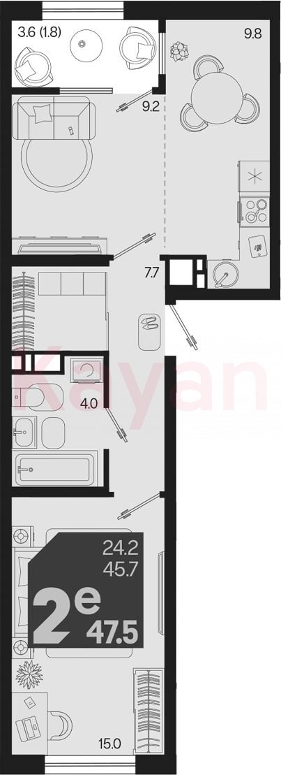 Продажа 2-комн. квартиры, 45.7 кв.м