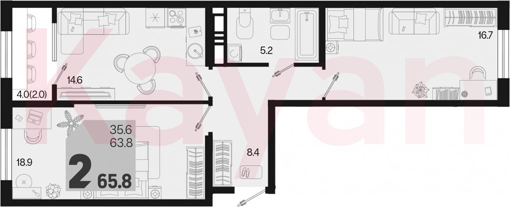 Продажа 2-комн. квартиры, 63.8 кв.м