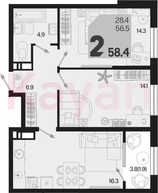 Продажа 2-комн. квартиры, 56.5 кв.м