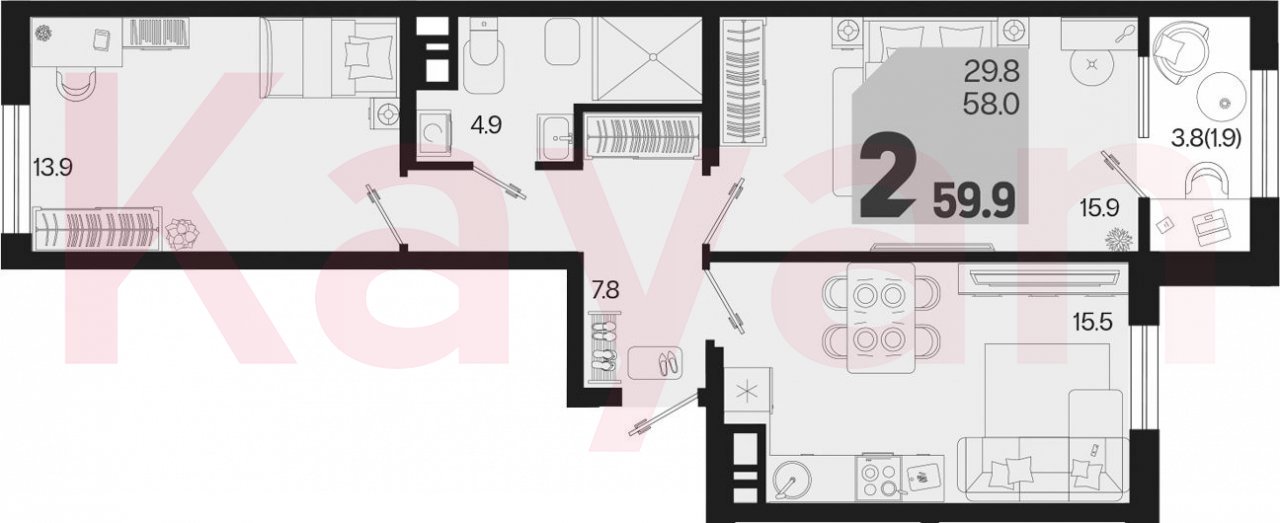 Продажа 2-комн. квартиры, 58 кв.м