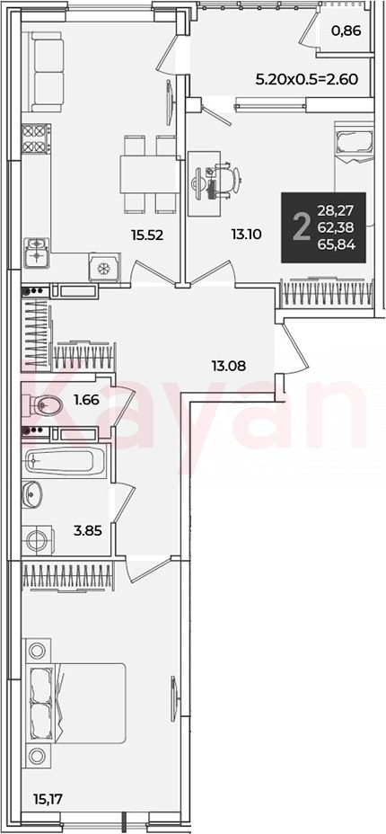 Продажа 2-комн. квартиры, 63.24 кв.м
