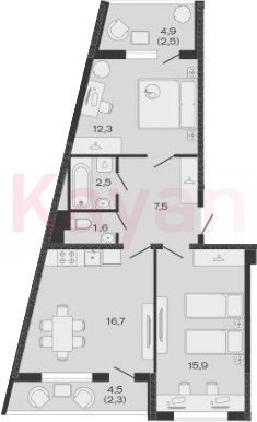 Продажа 2-комн. квартиры, 56.5 кв.м