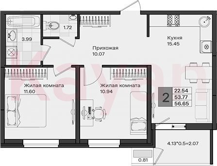 Продажа 2-комн. квартиры, 53.77 кв.м