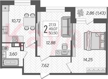 Продажа 2-комн. квартиры, 49.07 кв.м