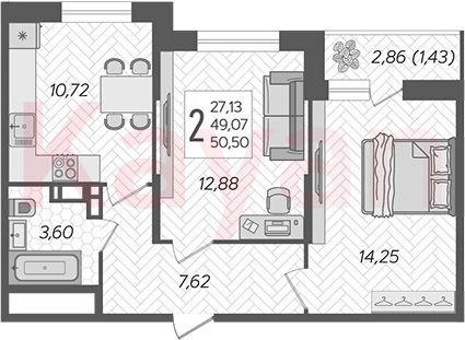 Продажа 2-комн. квартиры, 49.07 кв.м