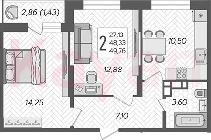 Продажа 2-комн. квартиры, 48.33 кв.м