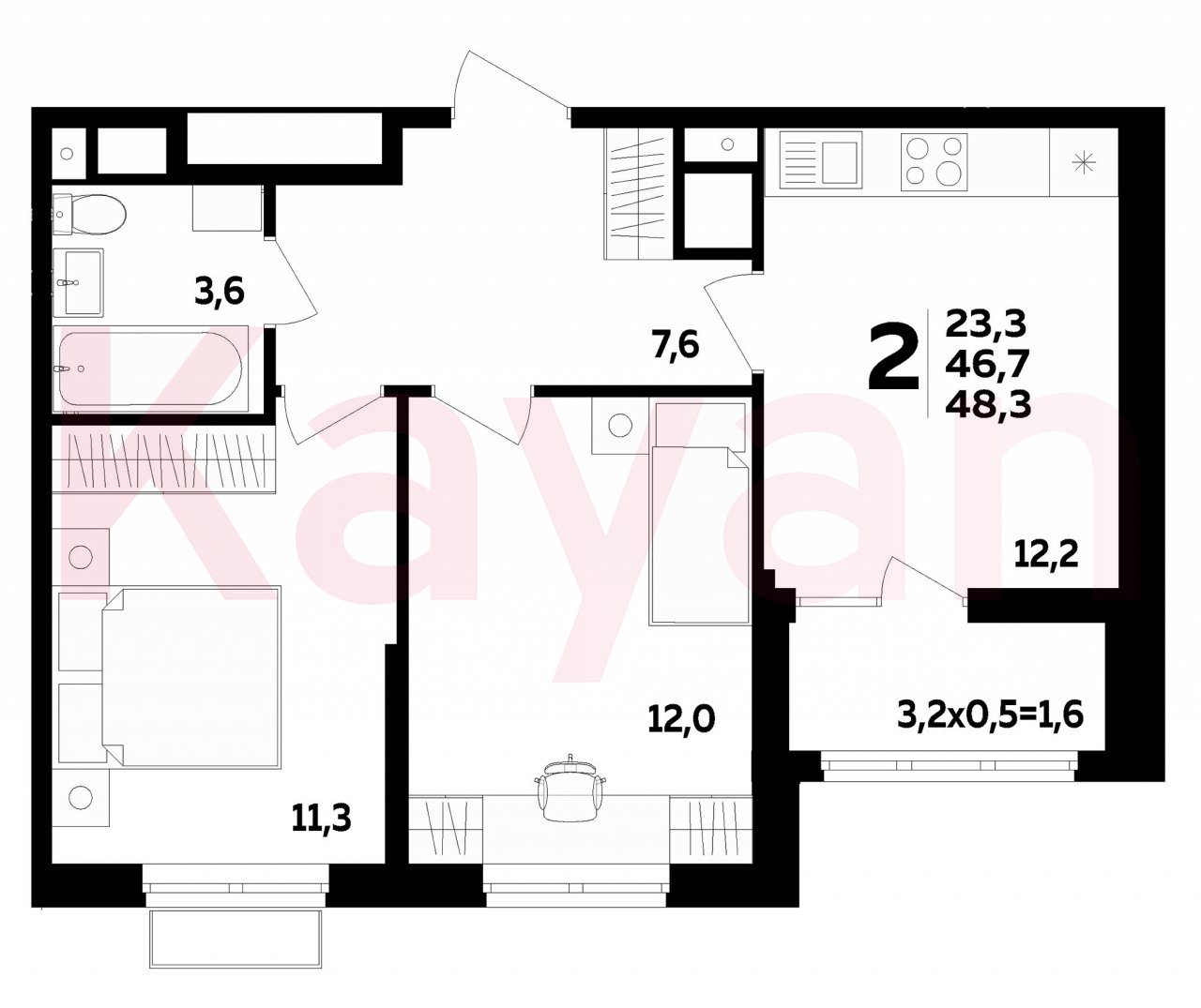 Продажа 2-комн. квартиры, 46.7 кв.м