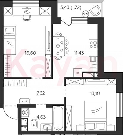 Продажа 2-комн. квартиры, 53.38 кв.м