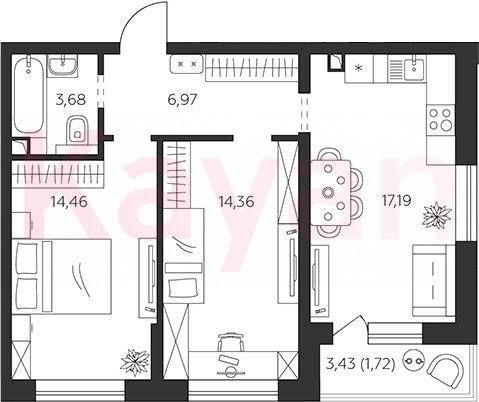 Продажа 2-комн. квартиры, 56.66 кв.м