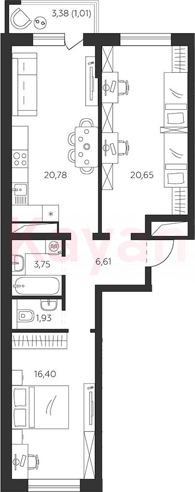 Продажа 2-комн. квартиры, 70.12 кв.м