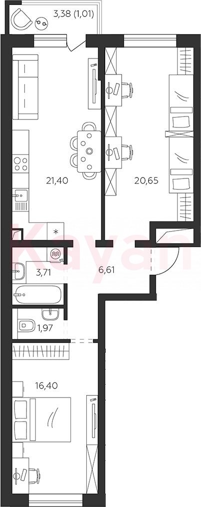 Продажа 2-комн. квартиры, 70.74 кв.м