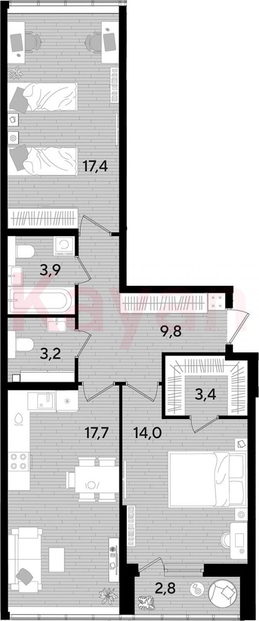 Продажа 2-комн. квартиры, 69.4 кв.м