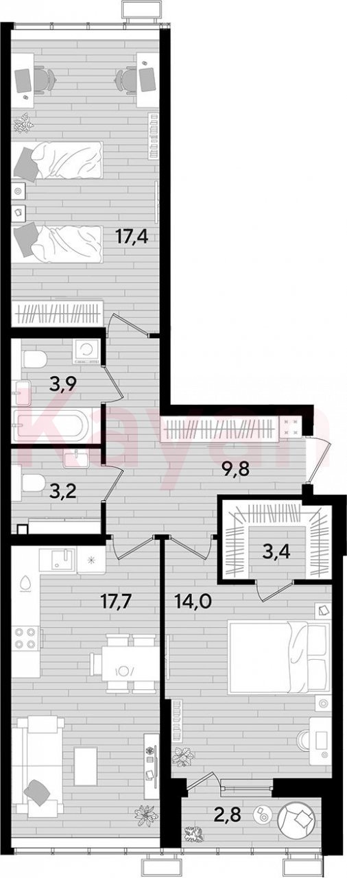 Продажа 2-комн. квартиры, 69.4 кв.м