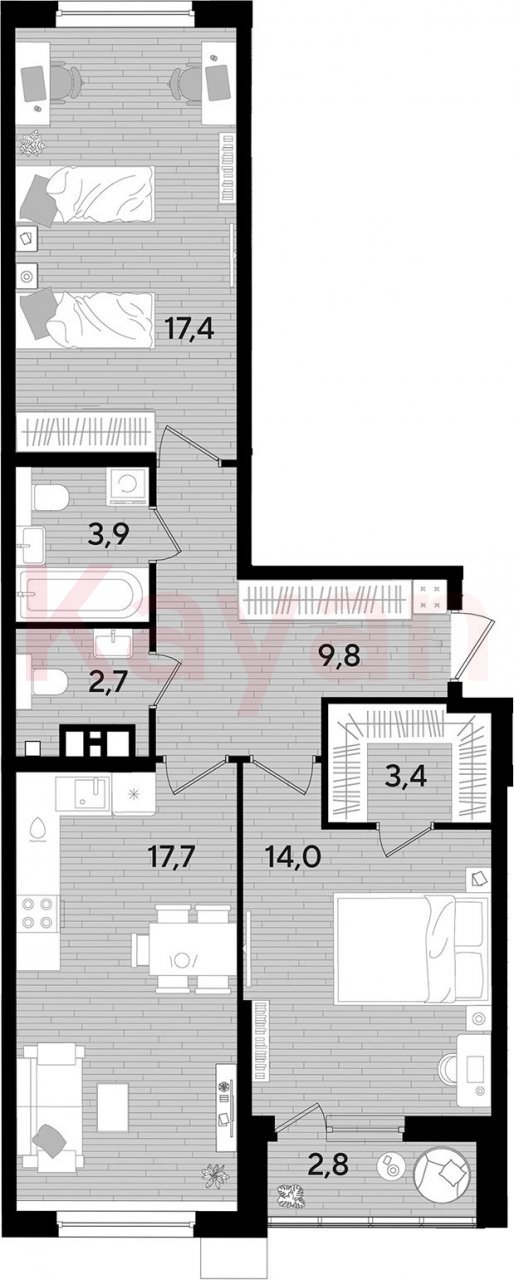 Продажа 2-комн. квартиры, 68.9 кв.м