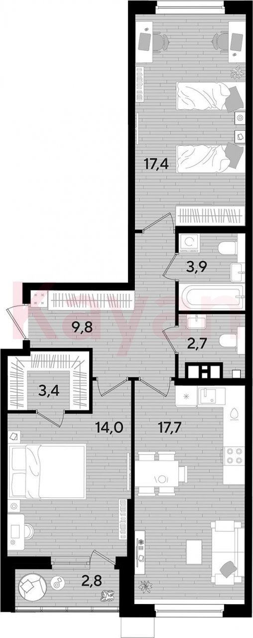 Продажа 2-комн. квартиры, 68.9 кв.м