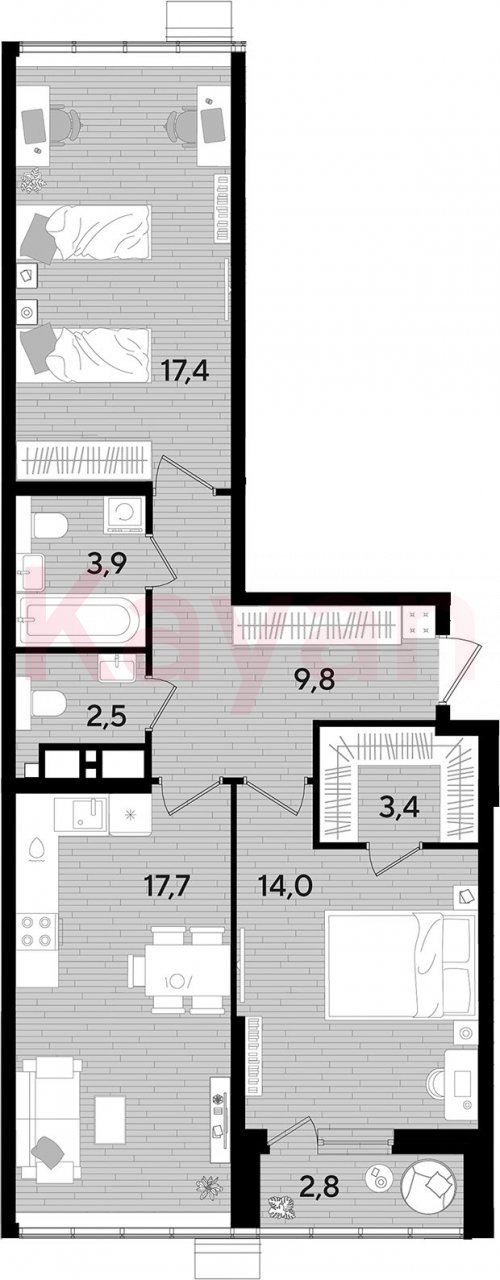 Продажа 2-комн. квартиры, 68.7 кв.м