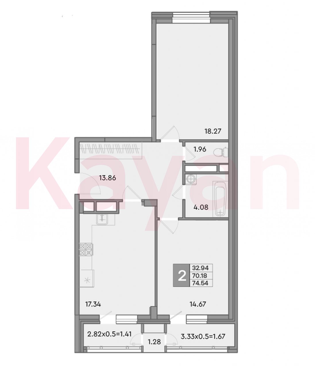 Продажа 2-комн. квартиры, 70.18 кв.м