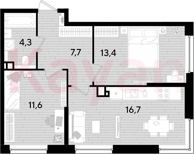 Продажа 2-комн. квартиры, 53.7 кв.м