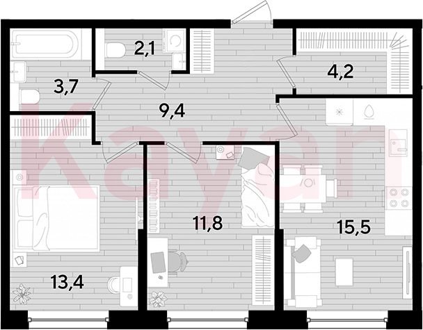 Продажа 2-комн. квартиры, 60.1 кв.м