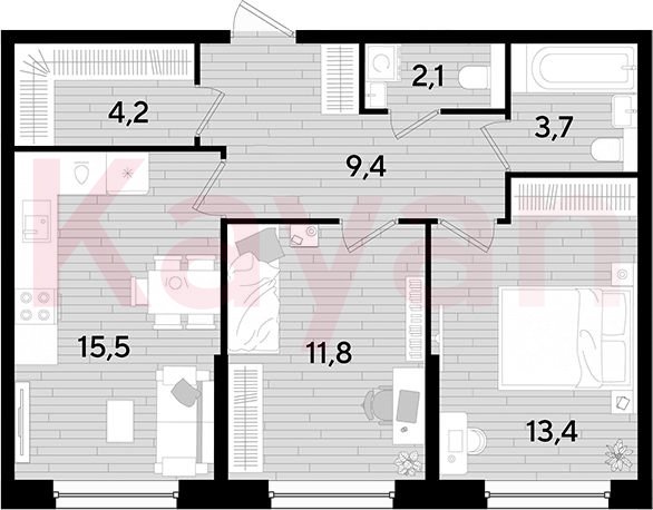 Продажа 2-комн. квартиры, 60.1 кв.м