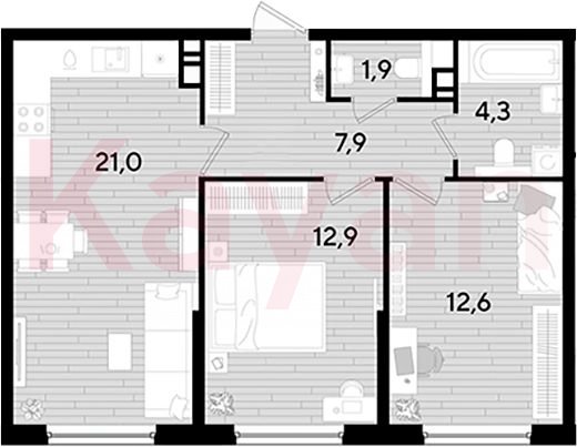 Продажа 2-комн. квартиры, 60.6 кв.м