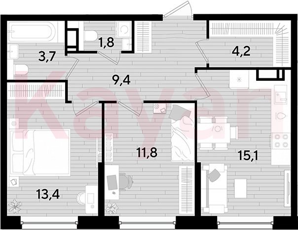 Продажа 2-комн. квартиры, 59.4 кв.м