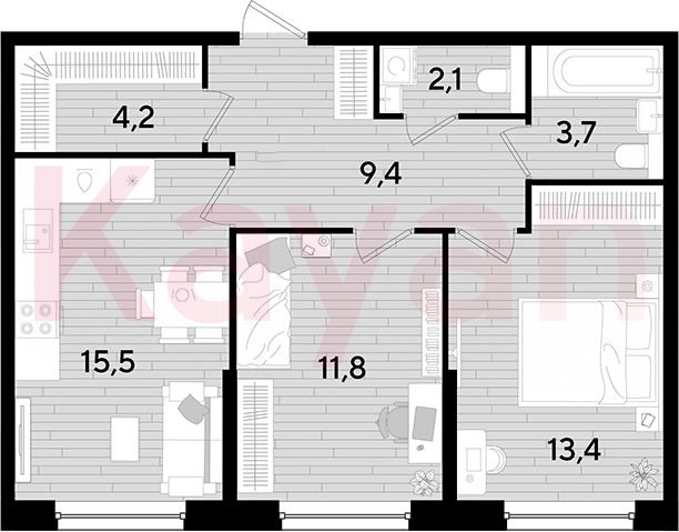 В комплексе предложено множество планировочных решений: в наличии квартиры, как классического типа, так и европланировки. Сдаются они с подчистовой отделкой, системой «Умный дом» и высотой потолков от 2,72 метра.