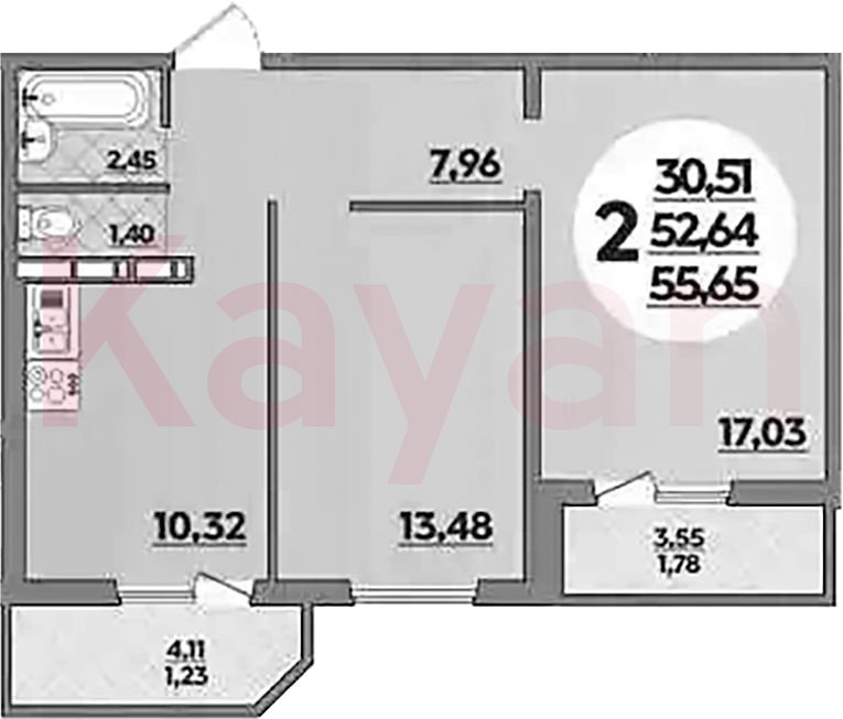 Продажа 2-комн. квартиры, 52.64 кв.м
