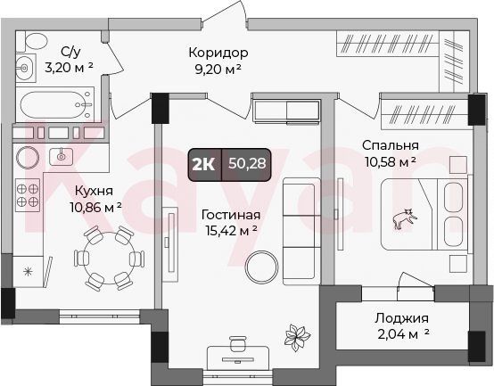 Продажа 2-комн. квартиры, 49.26 кв.м
