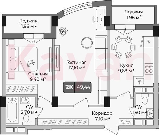 Продажа 2-комн. квартиры, 47.48 кв.м