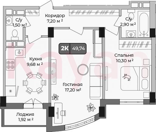 Продажа 2-комн. квартиры, 48.78 кв.м